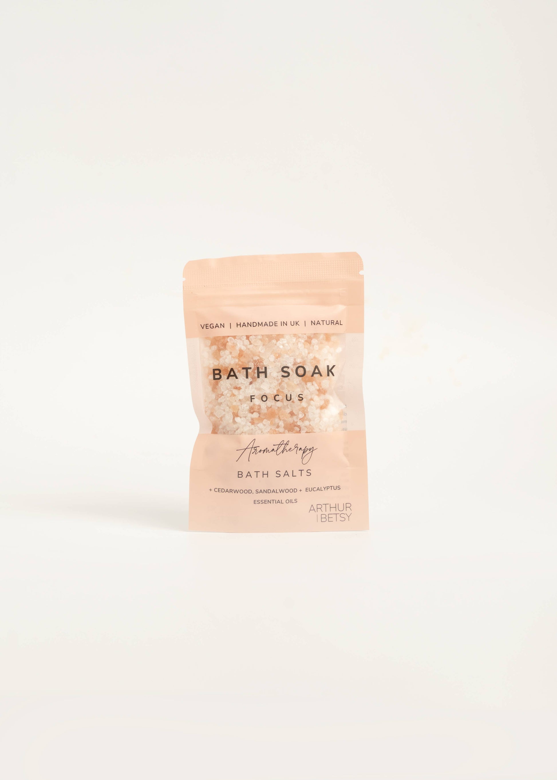 Focus: Dead Sea salts, Epsom salts, Cedarwood essential oil, Eucalyptus essential oil and Sandalwood.