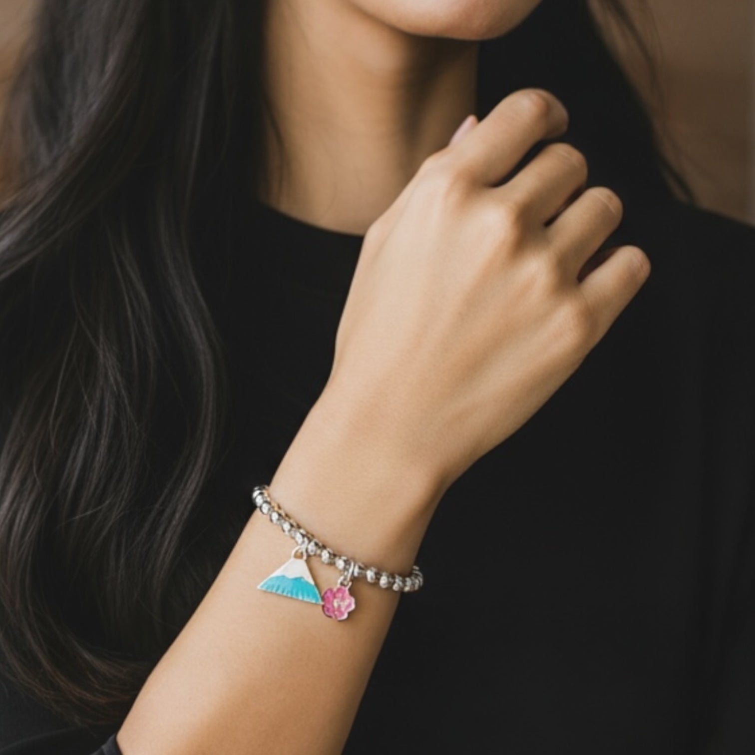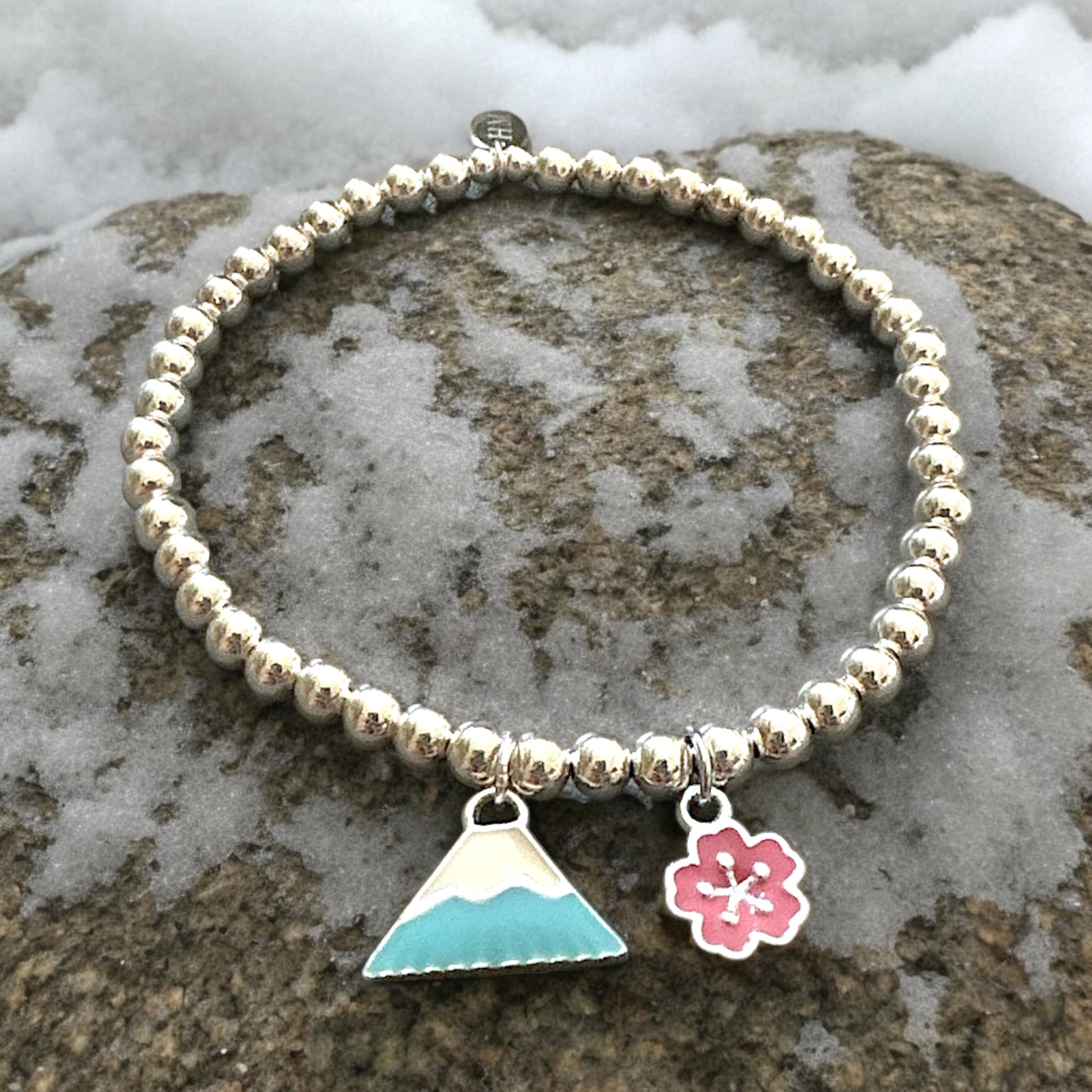 Blue Mt. Fuji with Pink Sakura Silver 925 Bracelet