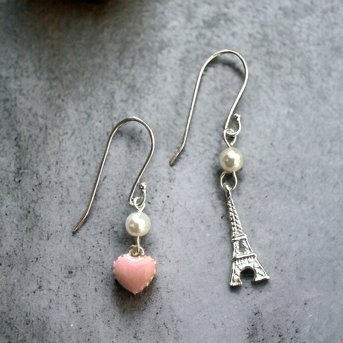 Eiffel Tower with Sweet Heart Silver 925 & Fresh Water Pearl Earrings