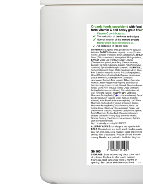 GreeNourish Complete is our flagship product and a best-seller… A high-fibre organic superfoods shake and lean plant protein powder, with over 35 nutritious ingredients, including: greens, algae, vegetables, fruits, berries, herbs, mushrooms and seeds in each and every serving – daily organic vegan nutrition made easy, with naturally high food form vitamin C content.