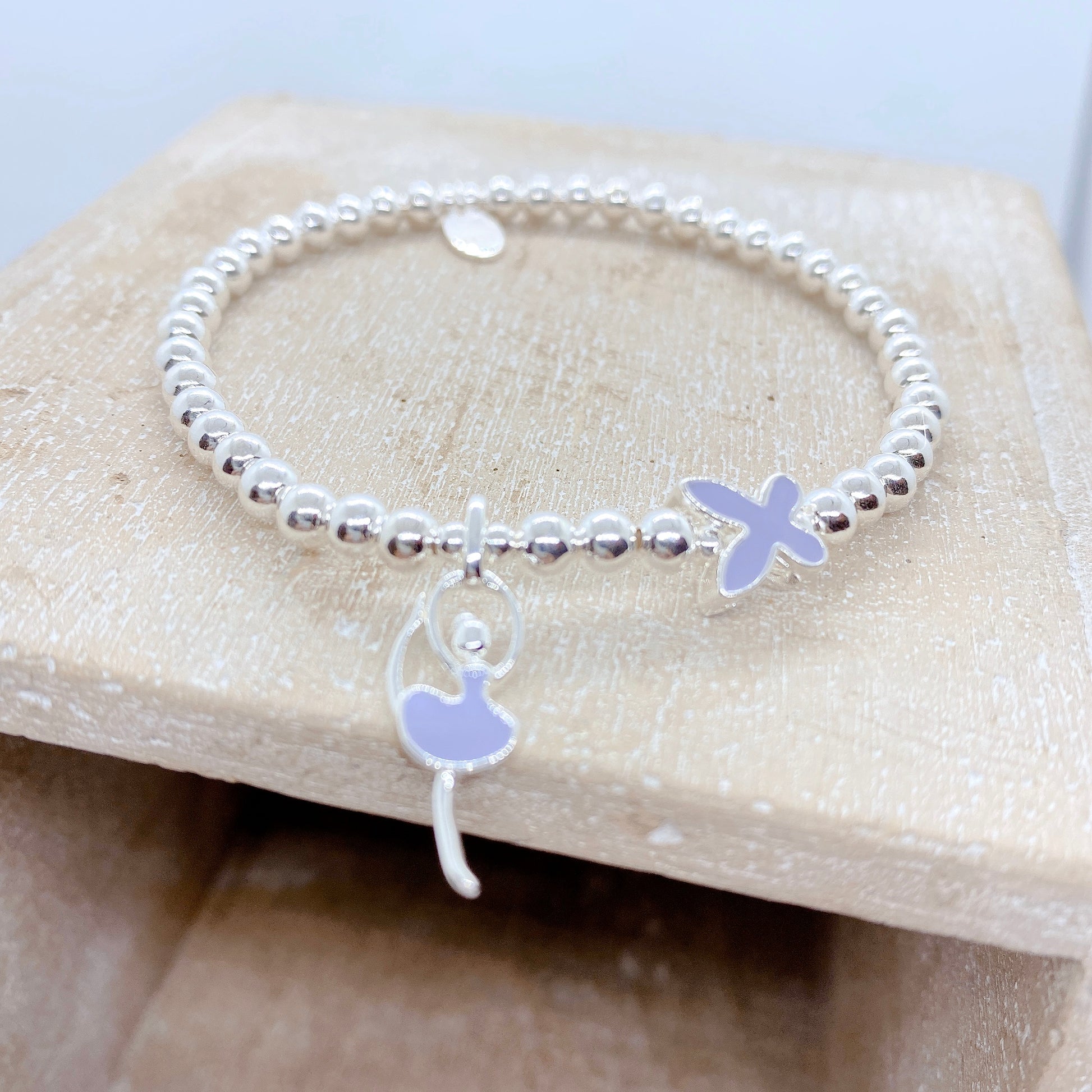A beautifully handmade S925 silver bracelet featuring a delicate purple butterfly and graceful dancer charm. Perfect for adding a touch of romance and charm to your everyday style or a special occasion.